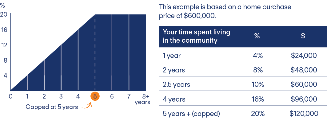 If you leave partway. through a year, you'll only pay a proportional (pro-rata) amount of that year's 4%. No matter how long you stay, you'll never pay more than 20%. This gives you clarity from day one and allows you to keep any capital growth of your home.