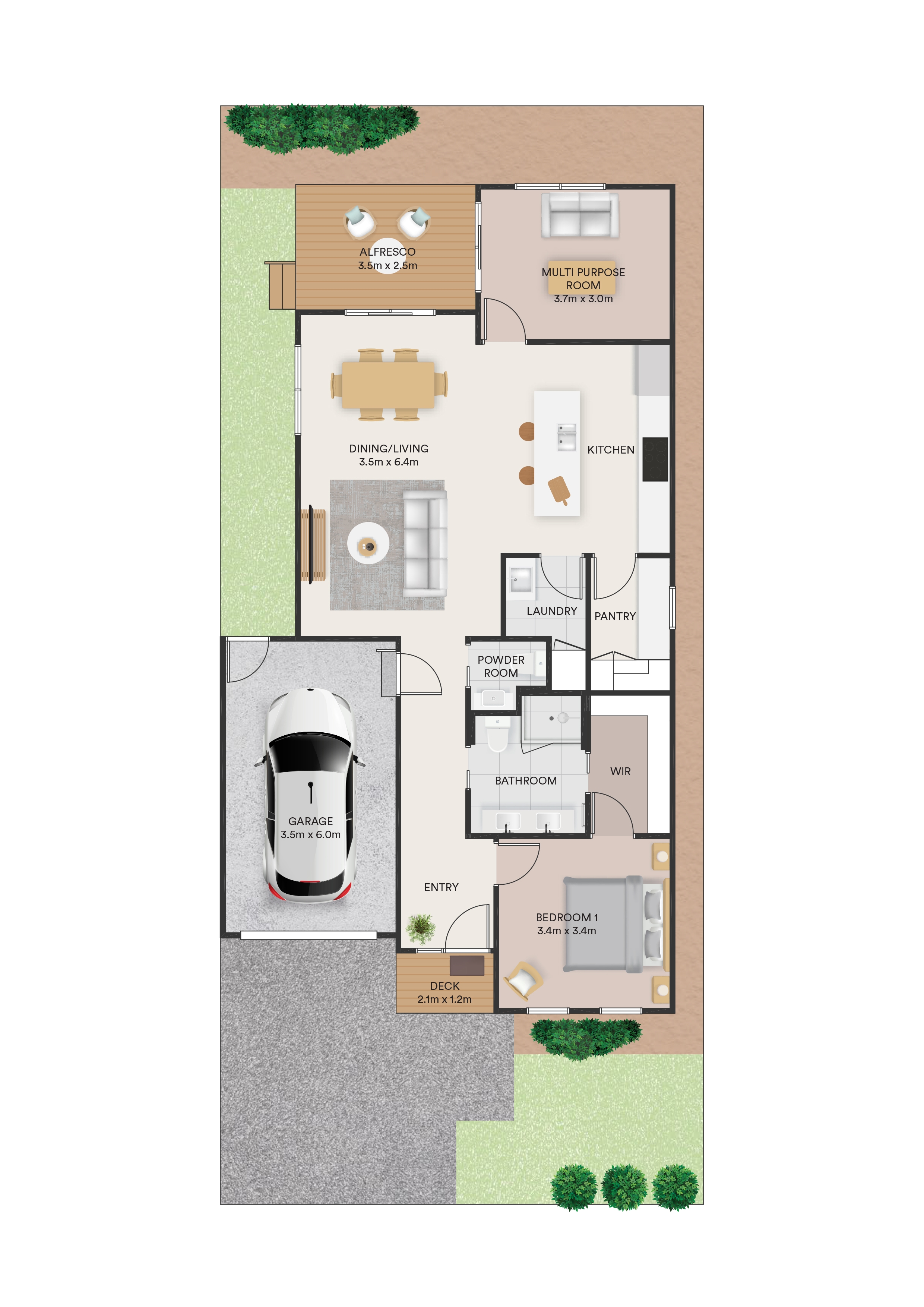Walking into this home, you're greeted by the modern master bedroom with a large walk-in robe and double vanity bathroom. The open-plan living, dining and kitchen area is at the heart of the home with a stone bench island and walk-in pantry. You'll have plenty of space with a multi-purpose room and rear alfresco for the perfect balance between indoor and outdoor living.