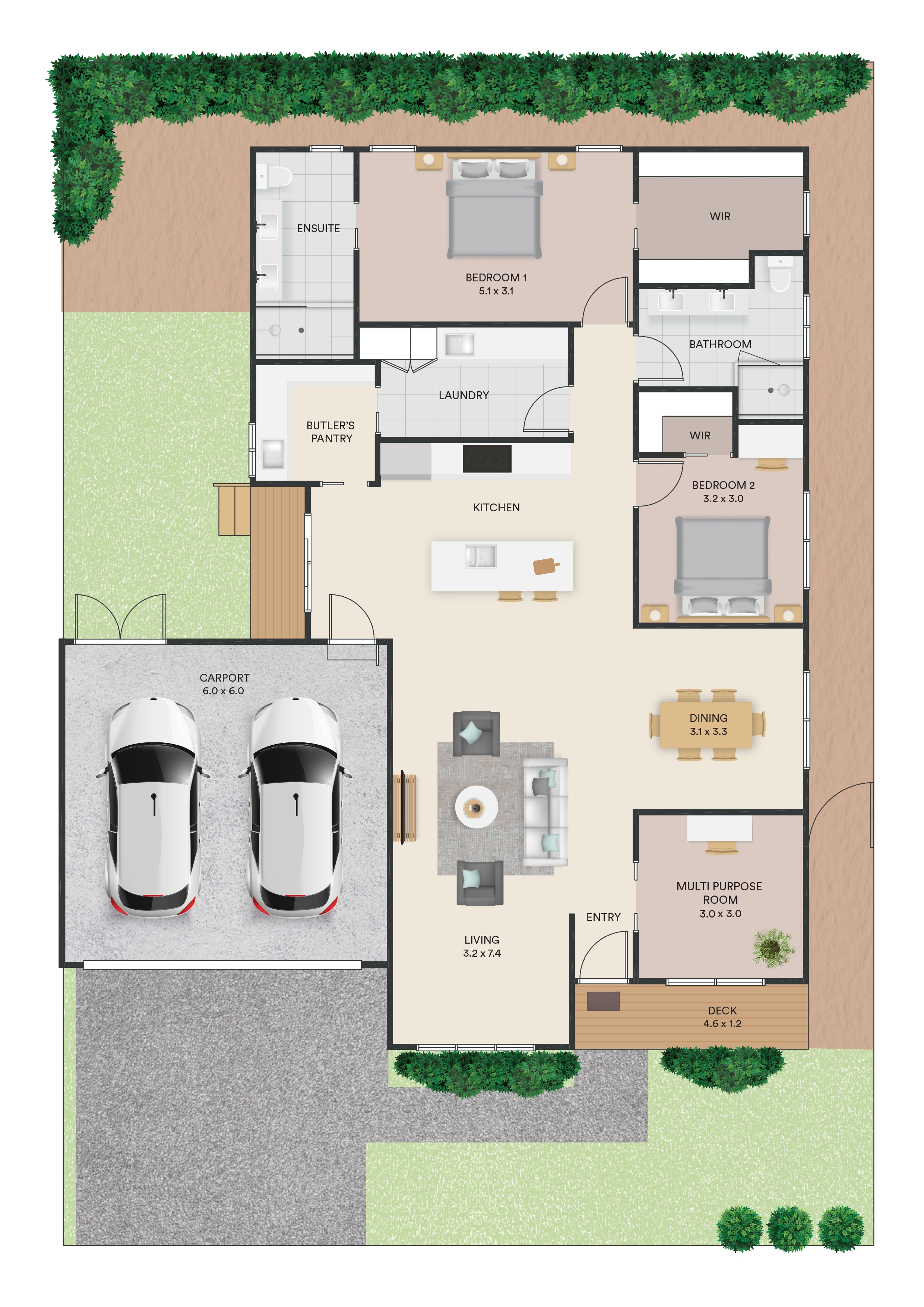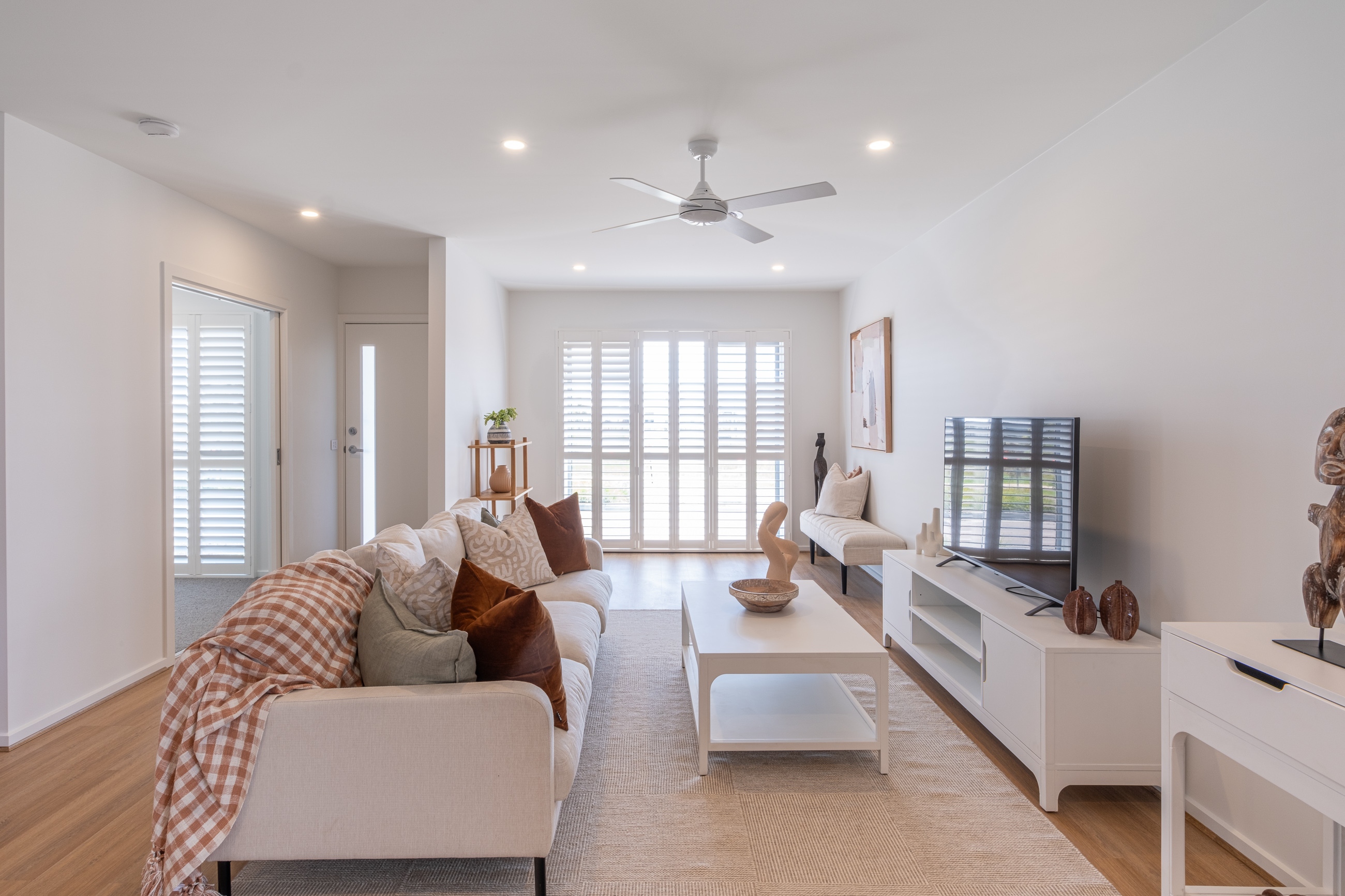 Step into this home and discover a light-filled study. The Alfie’s open-plan living, dining, and kitchen flows seamlessly, featuring a stone-top island and large butler’s pantry. Outside, the deck complements private rear bedrooms, guest suite, and master with WIR and double-vanity ensuite.