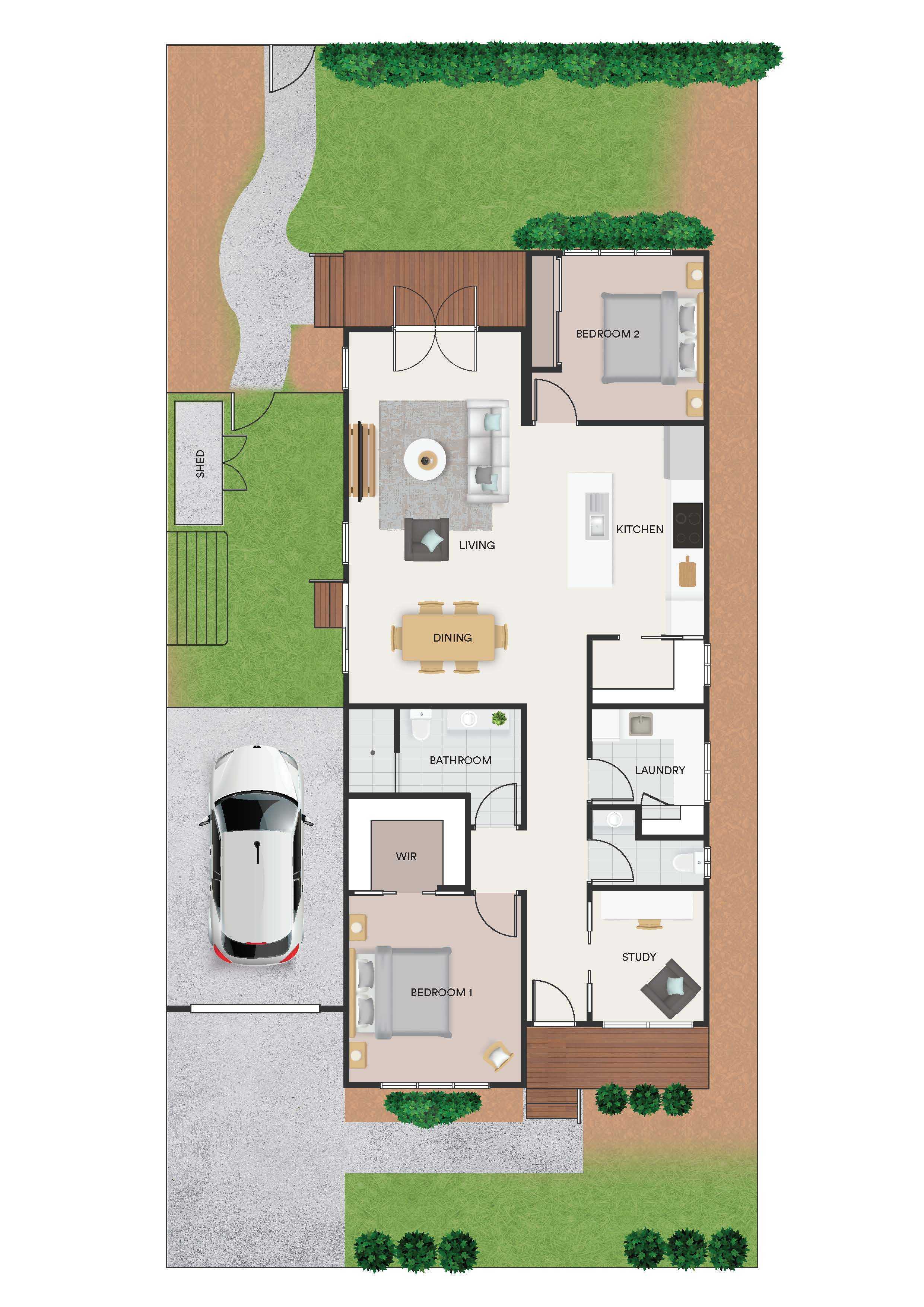 The Lloyd offers so many reasons to love living in this home. With a large bedroom and enormous walk -in-robe as you enter the home, ample study and all services designed for low maintenance living, you'll be focussed on you, not housework. Featuring a beautiful porch decking area at the rear, you’ll find this area & the open plan kitchen, dining and living area are perfect for entertaining guests