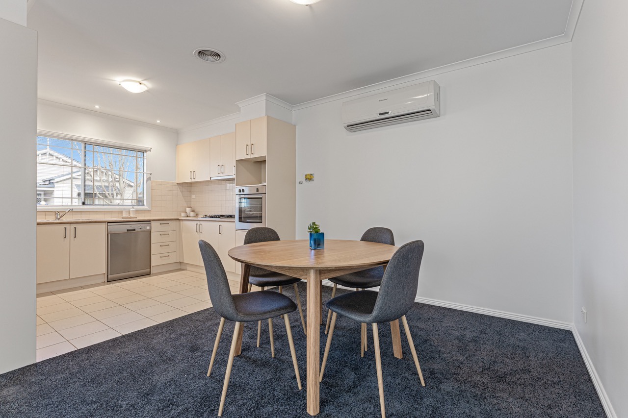 This beautifully two-bedroom home with a study offers light-filled living, a modern kitchen with stainless steel appliances, gas ducted heating, split-system aircon, front and rear security doors, manicured gardens, and an outdoor entertaining area — perfect for relaxed, low-maintenance living.