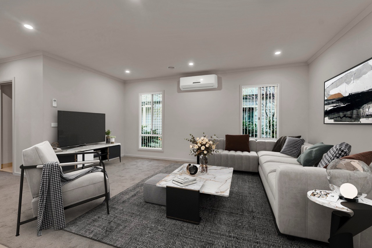 Two bedrooms plus a study create flexible living, with a large bathroom, spacious laundry and an additional toilet for everyday ease. The master features a walk-in robe, while the open-plan living area flows effortlessly to the alfresco for relaxed indoor–outdoor living.