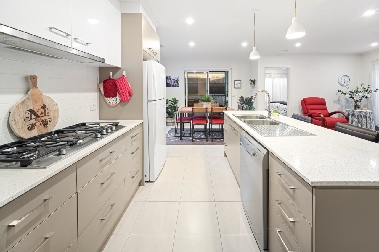 Beautifully designed home with two bedrooms, walk-in robe, and generous bathroom. Enjoy a stone kitchen with gas cooktop and dishwasher, dining area overlooking an enclosed sunroom, ducted heating, split-system cooling, low-maintenance garden, and remote-access garage for comfort and ease.