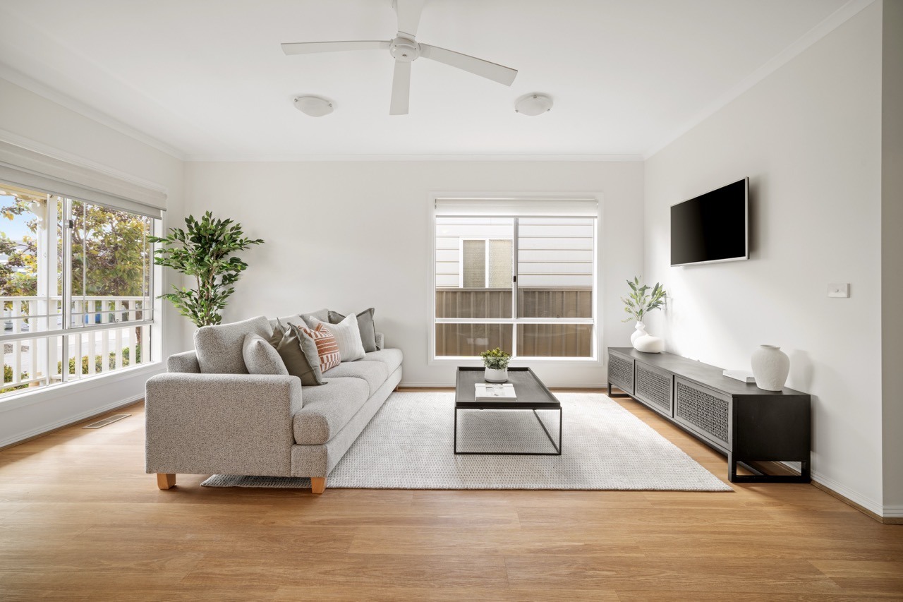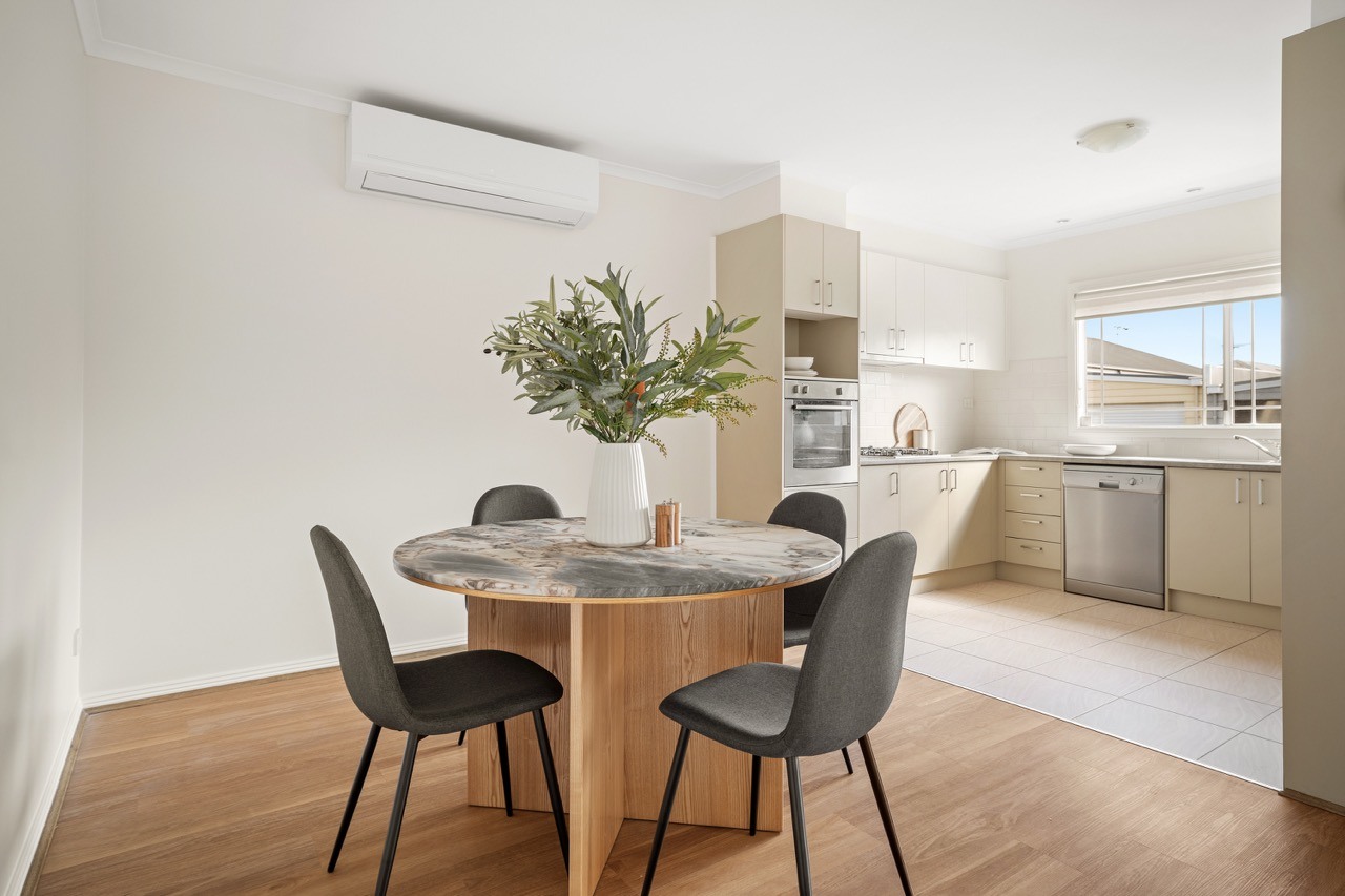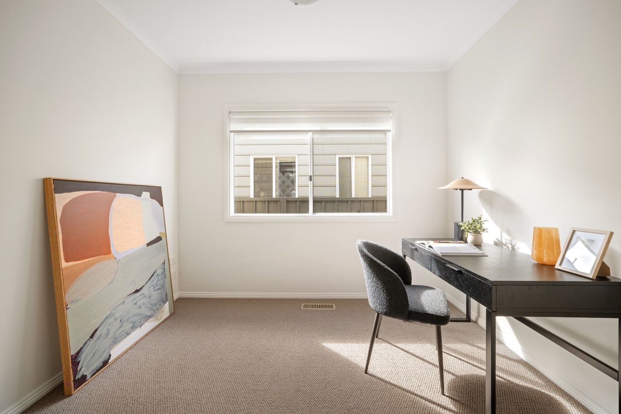 North-facing two-bedroom plus study home designed for low-maintenance, comfortable living. Features include open living with vinyl timber floors, fresh paint, new carpet, ducted heating, split-system aircon, laundry with second toilet, and a spacious undercover entertaining area with backyard for pets.